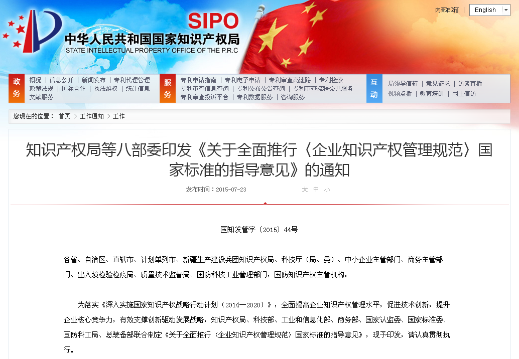 “貫標”對于企業(yè)來說,就是貫徹《企業(yè)知識產(chǎn)權(quán)管理規(guī)范》國家標準。企業(yè)知識產(chǎn)權(quán)管理規(guī)范的國家標準由國家知識產(chǎn)權(quán)局制訂,經(jīng)由國家質(zhì)量監(jiān)督檢驗檢疫總局、國家標準化管理委員會批準頒布,于2013年3月1日起實施,標準號是GB/T29490-2013。目前,全國各地都在陸續(xù)推行這一標準。
