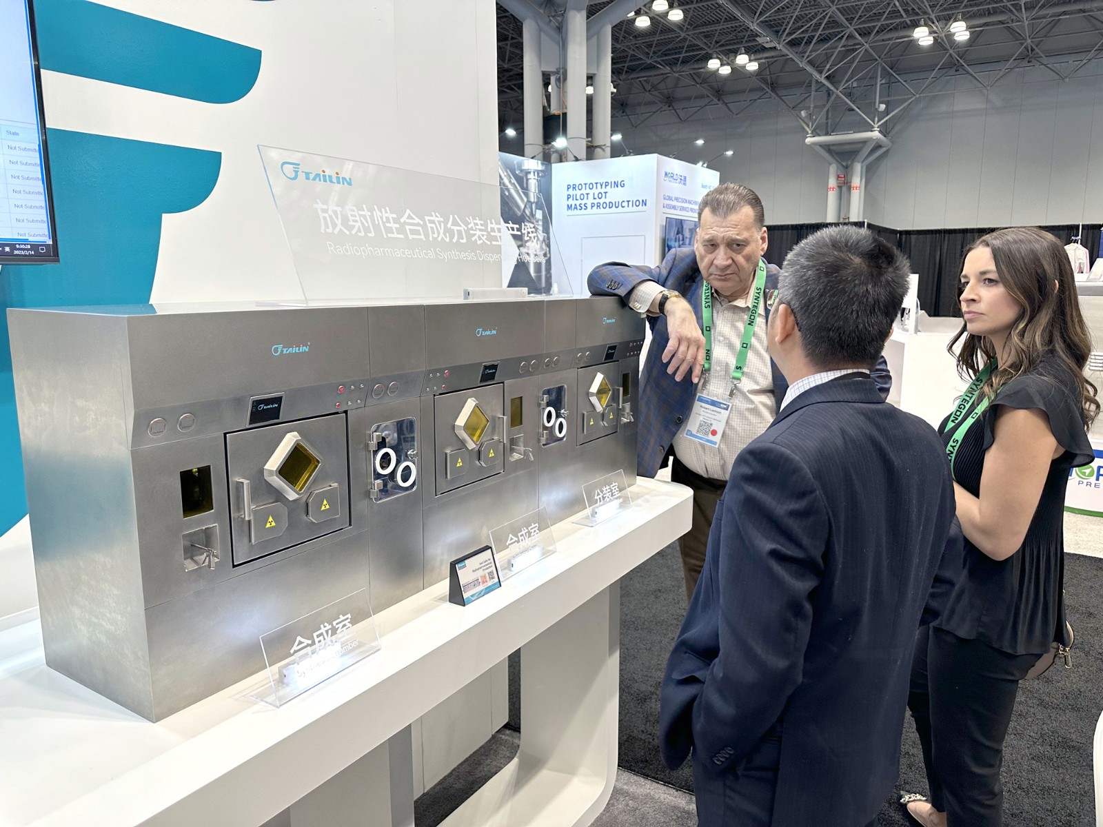 作為制藥裝備領(lǐng)域?qū)I(yè)廠商,泰林生物此次攜新品醫(yī)用同位素?zé)崾沂状瘟料嗪M庹箷?huì),為放射性藥品生產(chǎn)提供滿足行業(yè)最高標(biāo)準(zhǔn)的系統(tǒng)化解決方案,引領(lǐng)安全高效的核藥生產(chǎn)。其獨(dú)特的設(shè)計(jì)、高效的性能以及卓越的安全保障,受到了與會(huì)者的廣泛關(guān)注。