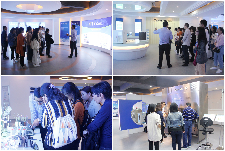 參觀一期新生產(chǎn)基地后,領(lǐng)導(dǎo)和專家們隨即參觀了泰林生物企業(yè)形象和產(chǎn)品展示廳,全面地了解了泰林生物的發(fā)展歷史、企業(yè)文化和核心產(chǎn)品,對(duì)無(wú)菌隔離器系統(tǒng)、過(guò)氧化氫滅菌器、無(wú)菌檢測(cè)系統(tǒng)、微生物檢測(cè)系統(tǒng)及TOC分析儀等產(chǎn)品產(chǎn)生了極大的興趣。參觀的同時(shí)也對(duì)產(chǎn)品的操作及性能特點(diǎn)展開了交流、討論,充分肯定了泰林生物的科研成果和技術(shù)水平。