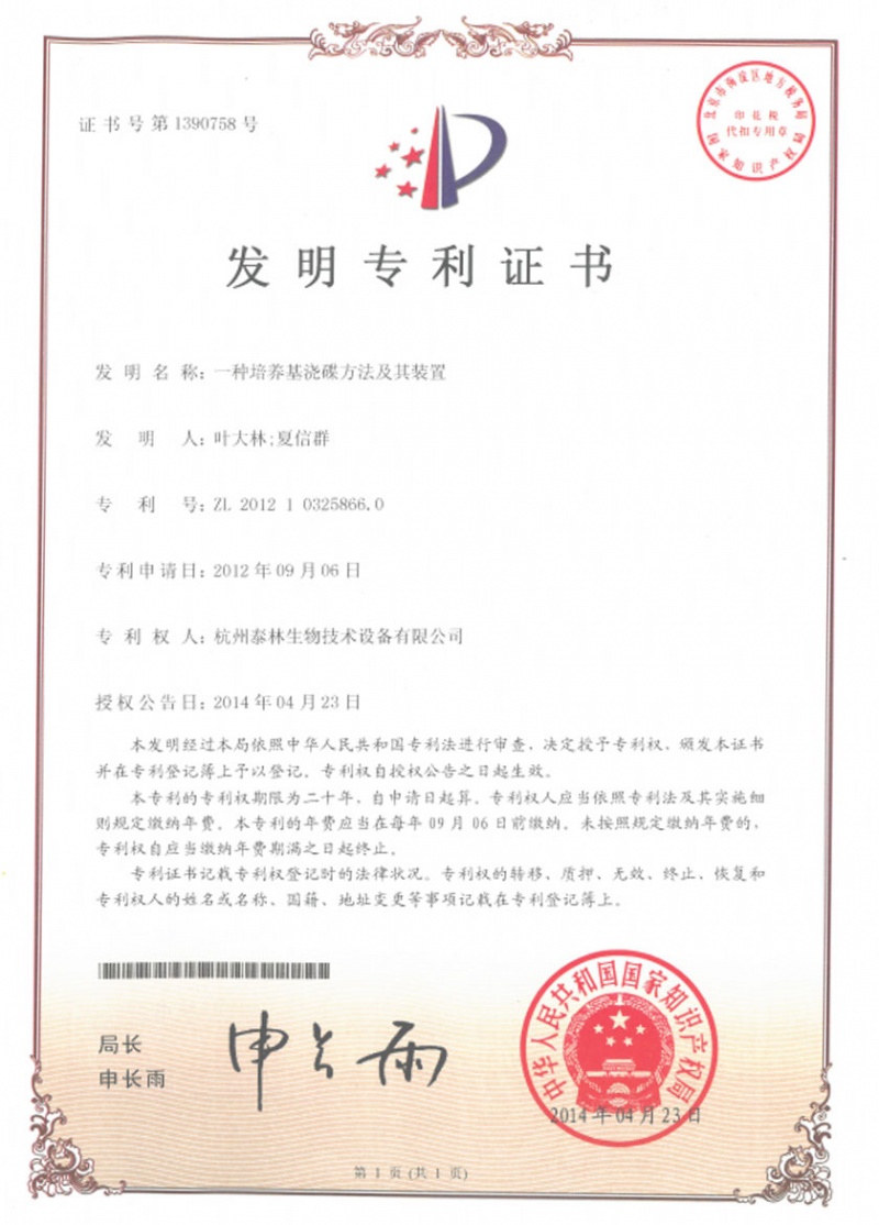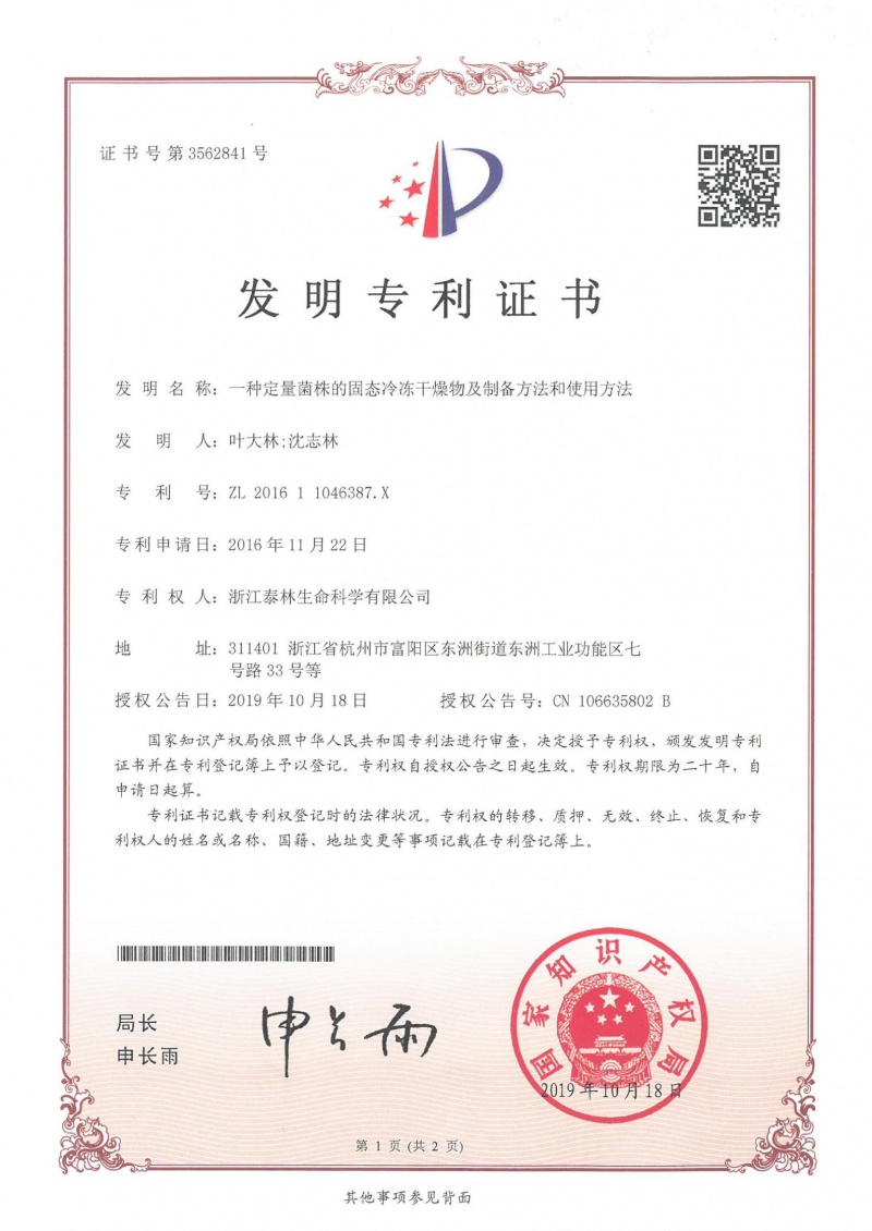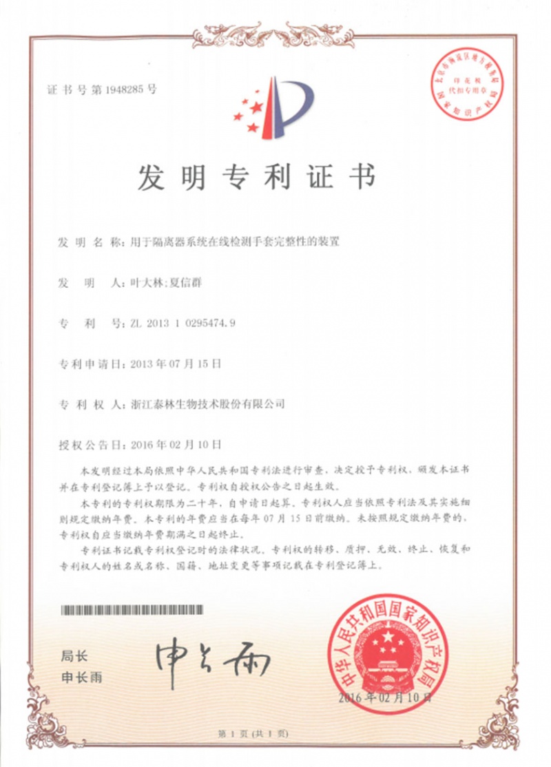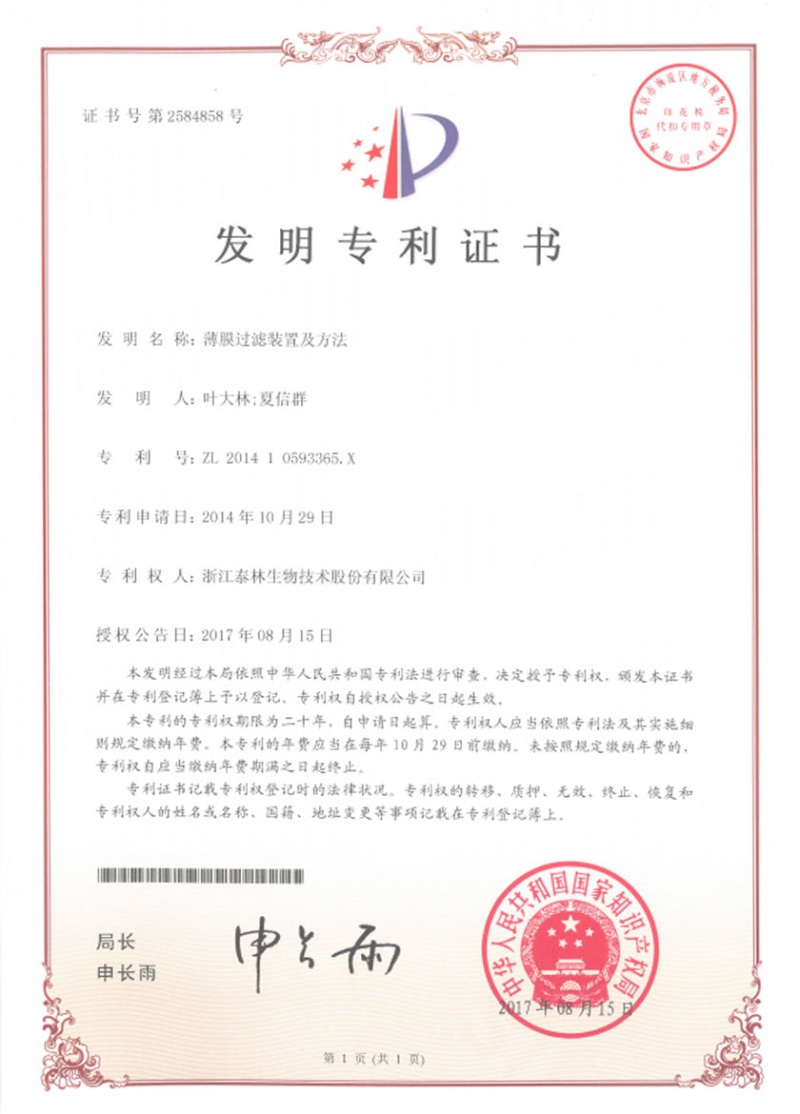 泰林生物擁有國家專利450余項,其中發(fā)明專利63項。