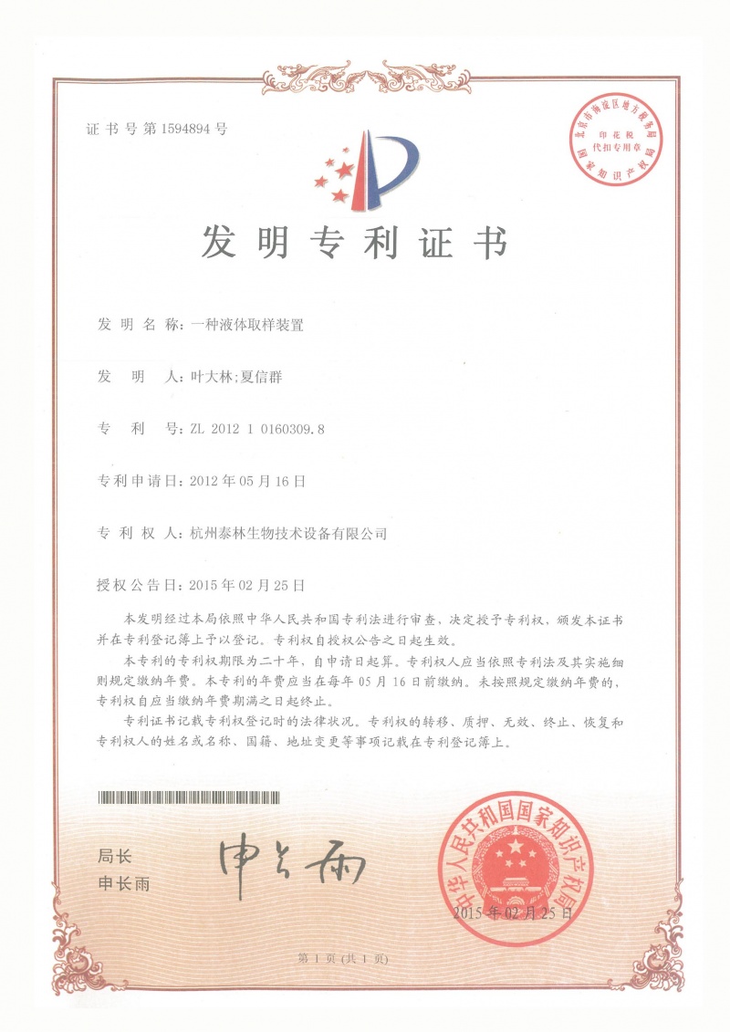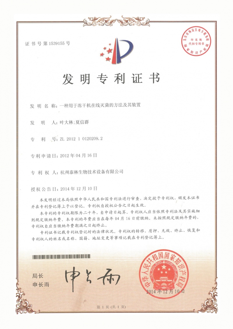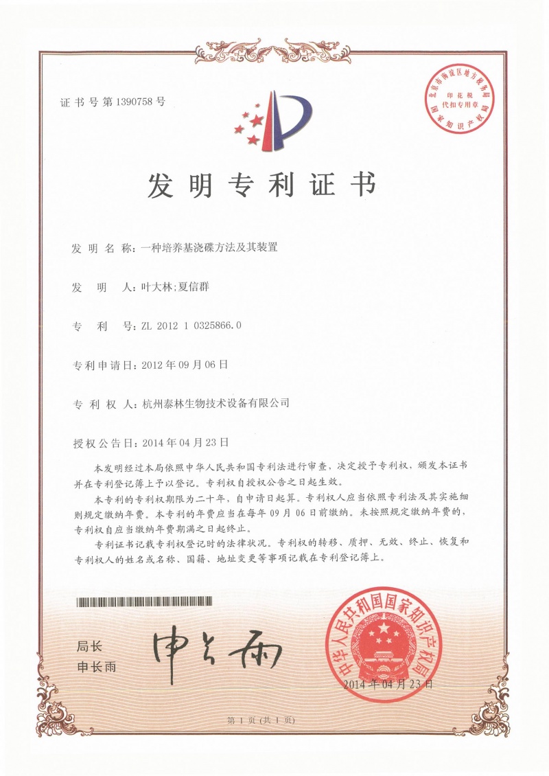 泰林生物擁有國家專利450余項,其中發(fā)明專利63項。